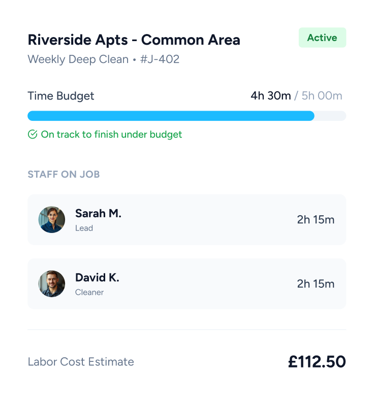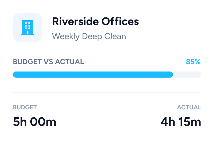 Link hours to specific cleaning contracts. See exactly how long each clean takes to ensure your pricing is profitable and efficient.