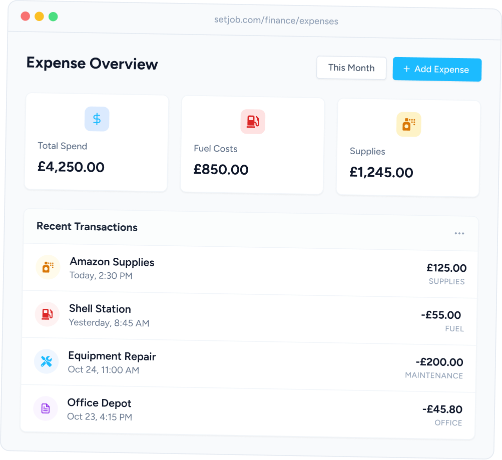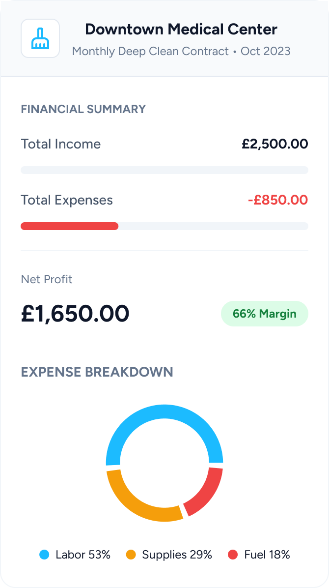 Stop hoarding paper receipts. Enter expenses on the go, categorize them instantly (supplies, fuel, equipment), and keep your financial records organized without the headache.