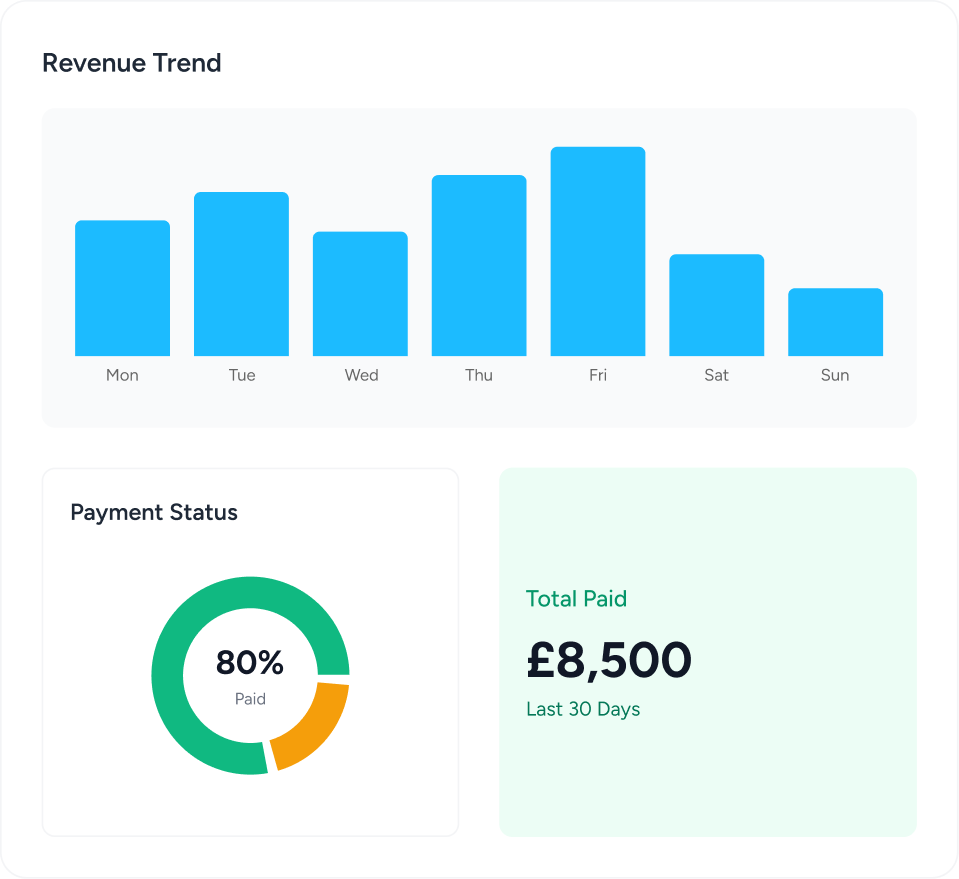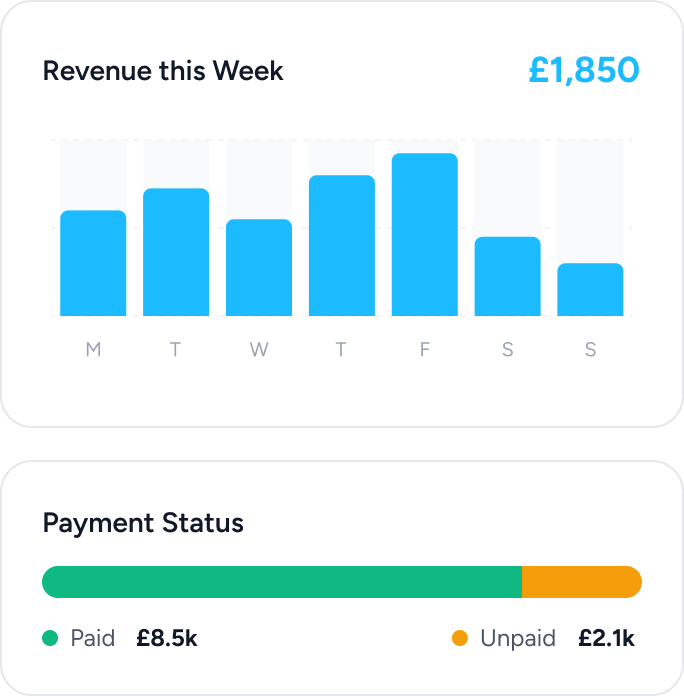 See jobs, staff performance, and income at a glance — no spreadsheets.